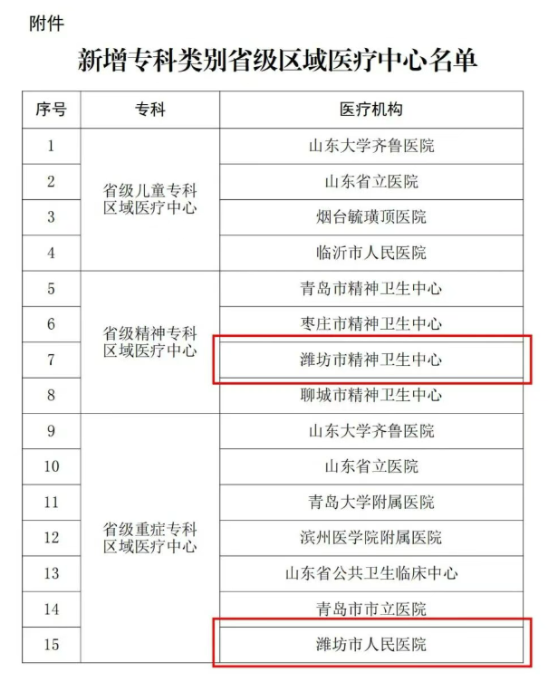 潍坊市成功争创两个专科类别省级区域医疗中心
