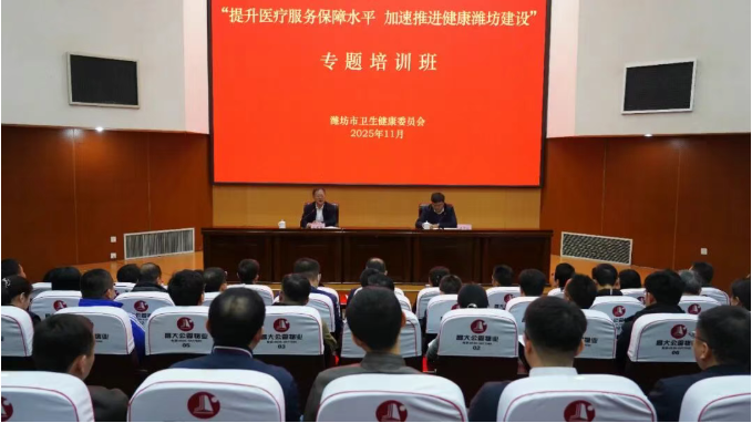 为深入学习贯彻党的二十大和二十届四中全会精神,加快推进健康潍坊建设,提升卫健系统干部推动公立医院高质量发展的能力。近日,市卫健委“提升医疗服务保障水平 加速推进健康潍坊建设”专题培训班在市委党校举办。市卫健委党组书记、主任,市人民医院党委书记苏茂泉出席开班式并作动员讲话。市卫健委党组成员、副主任张洪才分享了公立医院改革实践探索等潍坊经验。市计生协会副会长万志刚主持。