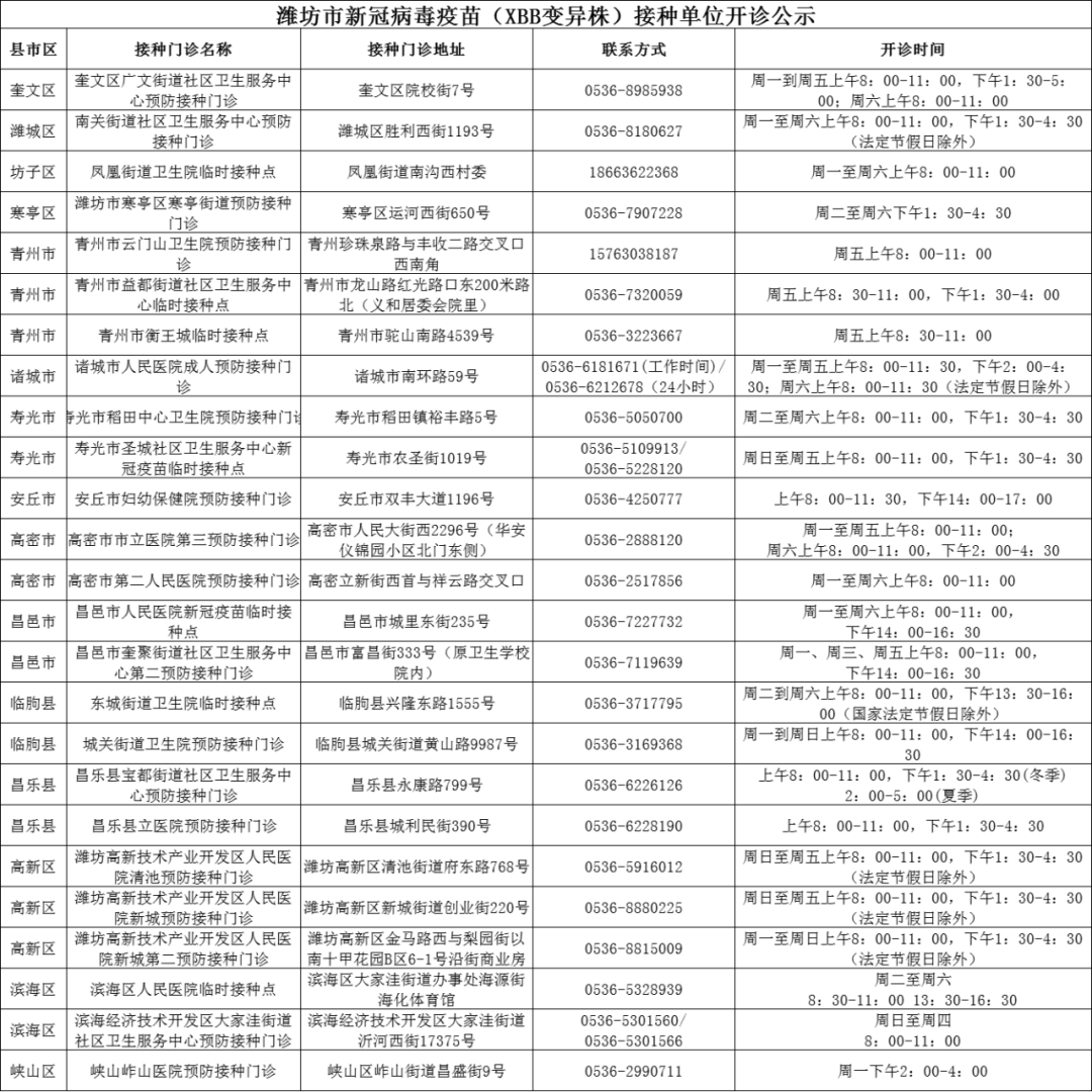 附:潍坊市含XBB变异株抗原成分的新冠病毒疫苗接种单位开诊公示
