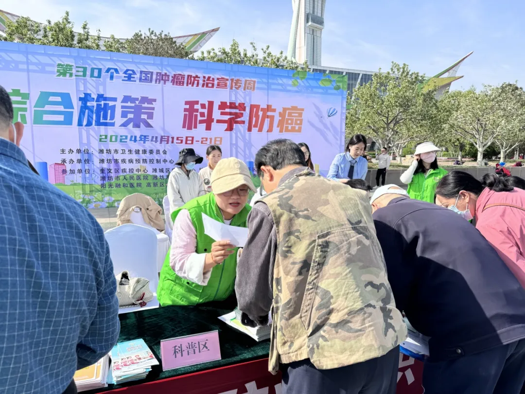 4月15—21日是第30个全国肿瘤防治宣传周,今年的宣传主题是“综合施策,科学防癌”。4月17日,由市卫健委主办、市疾控中心承办,4家县级疾控中心和6家二级及以上医疗机构共同参与的大型科普宣传活动在市人民广场举行,吸引了众多市民的关注和参与。