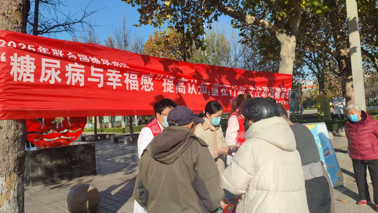 寒亭区卫健局、区疾控中心、区妇幼保健院在寒亭区体育广场联合开展2025年联合国糖尿病日、世界慢阻肺日主题宣传活动。