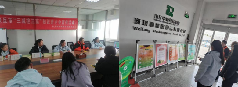11月17日,安丘市疾控中心工作人员走进安丘市和盛园食品有限公司,开展“三减进企业”宣传及减盐食品调查工作。