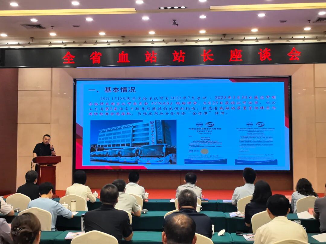2025年8月12日,全省血站站长座谈会在聊城召开,潍坊市中心血站党委书记、站长王胜以《以评促建 提质增效 推进血站高质量发展》为题作典型发言,分享了以ISO 15189医学实验室认可为抓手,推动采供血工作提质增效的宝贵经验。