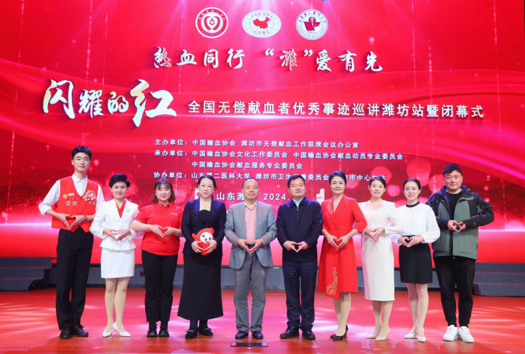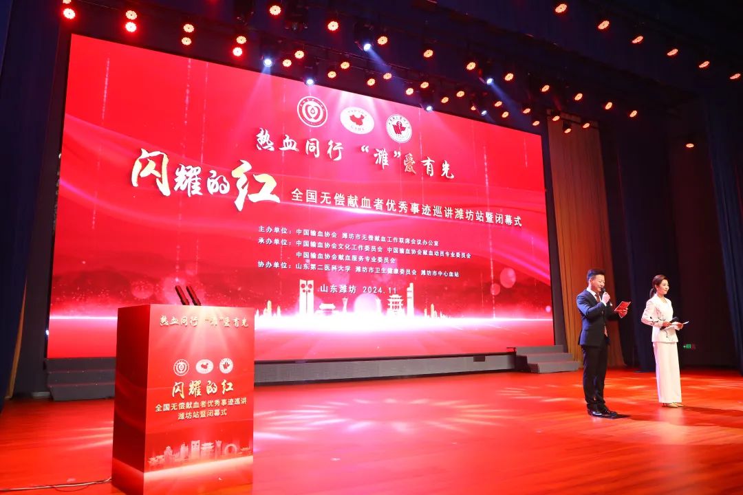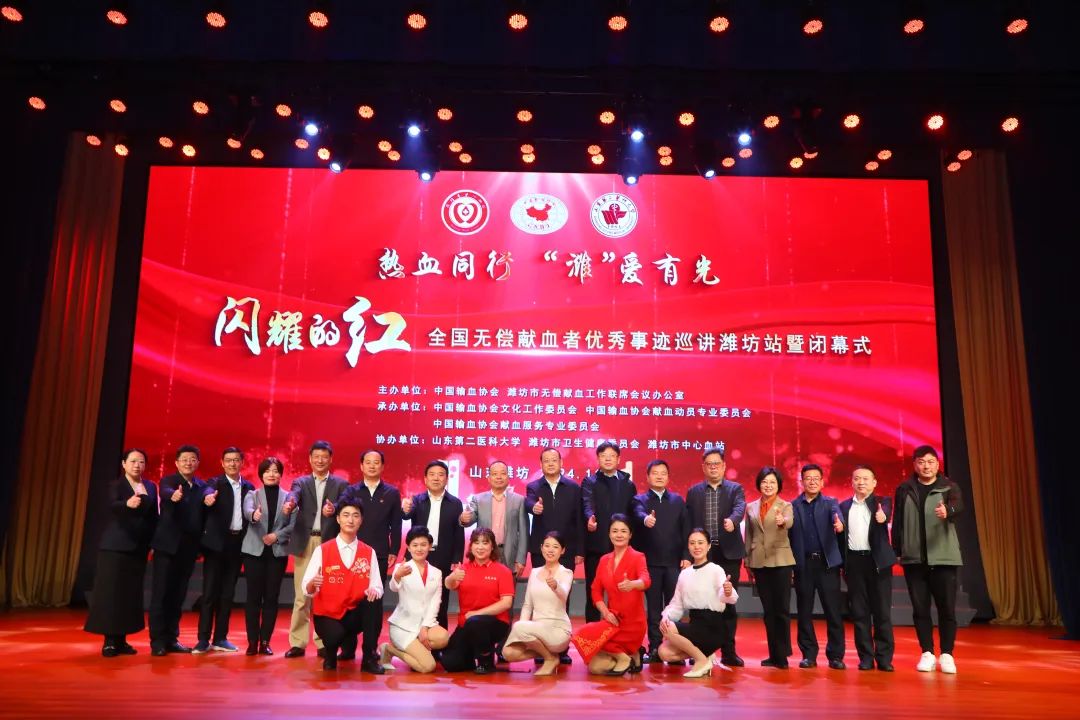 全国无偿献血者优秀事迹巡讲团成员(第三届“闪耀的红”演讲报告会获奖选手)和来自潍坊市无偿献血工作联席会议成员单位的各位领导,山东第二医科大学、山东工业技师学院、潍坊市技师学院等高校的师生代表以及媒体朋友等700余人共同参加了活动。